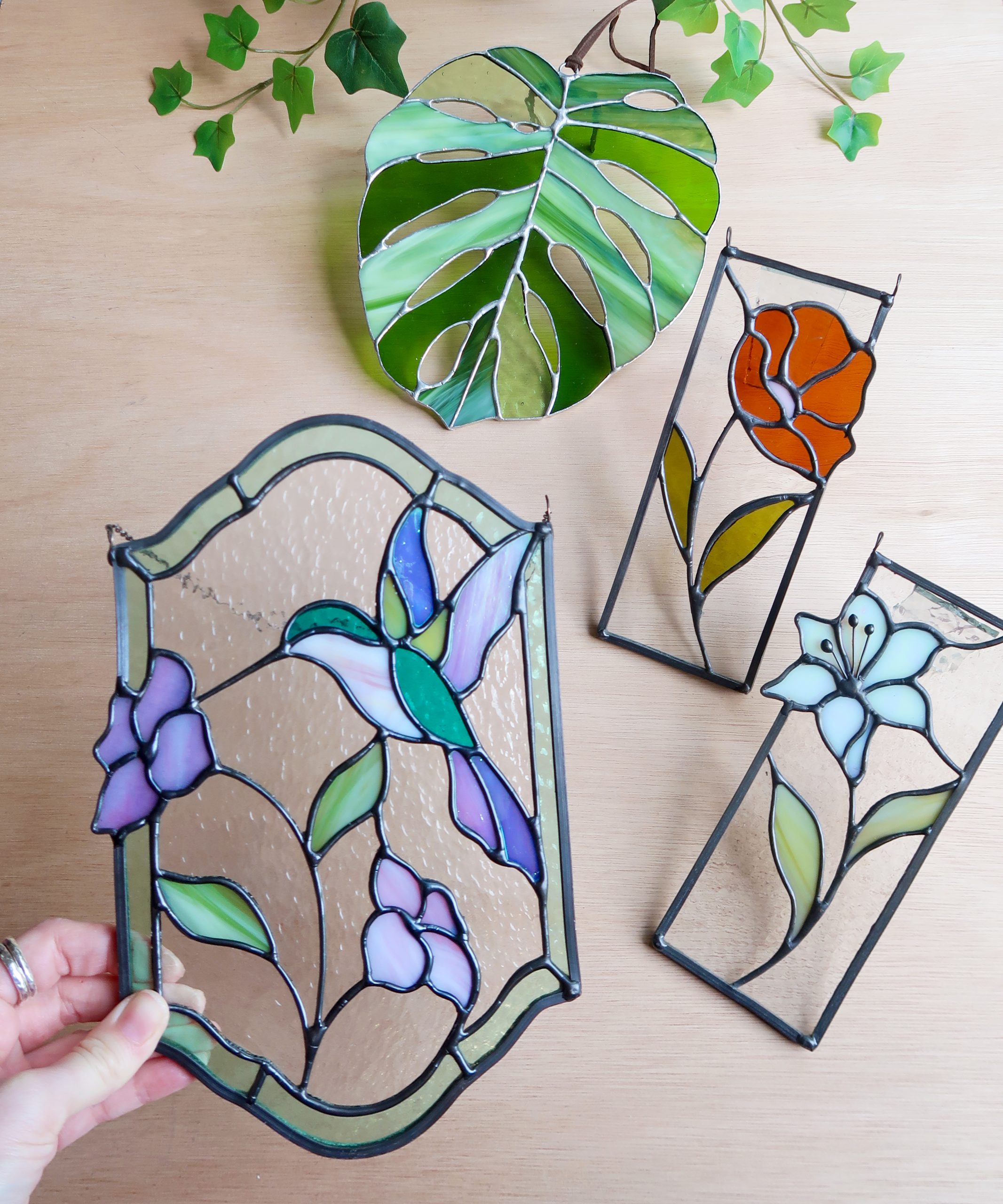 Handcrafted stained glass art pieces. vibrant designs inspired by nature to bring light and life to the windows in your home.