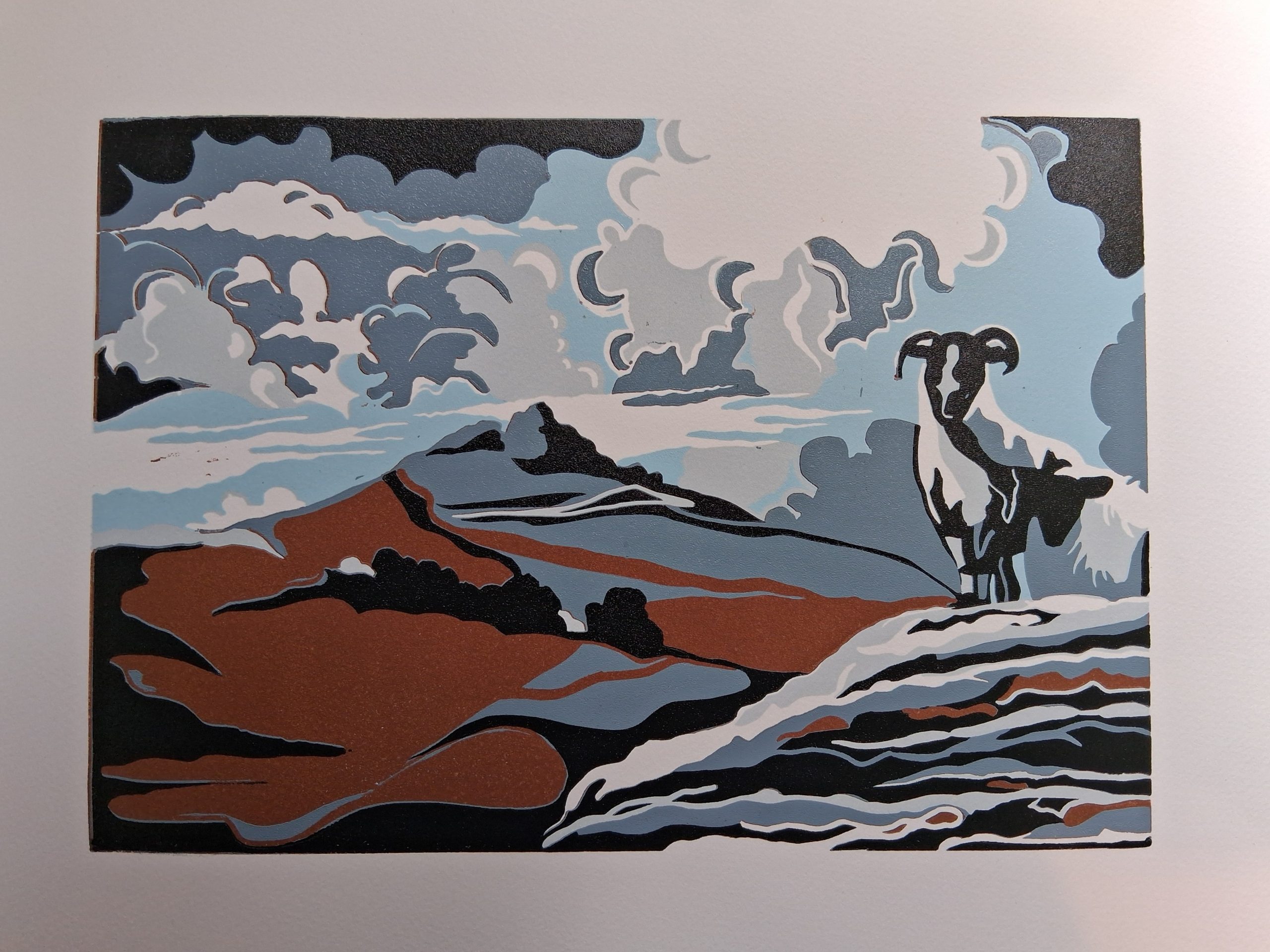 I am a relief printmaker working mainly using Lino. I produce prints mainly of the landscape, wildlife and people of Dartmoor using photos I take myself. I then transfer the images onto Lino and start the process of producing reduction prints, all of which are hand carved and hand printed. Each print can take up to three or four weeks for me to complete depending of the complexity of the carving and amount of colours I use. I usually produce small runs of between 5 and 10 prints.
